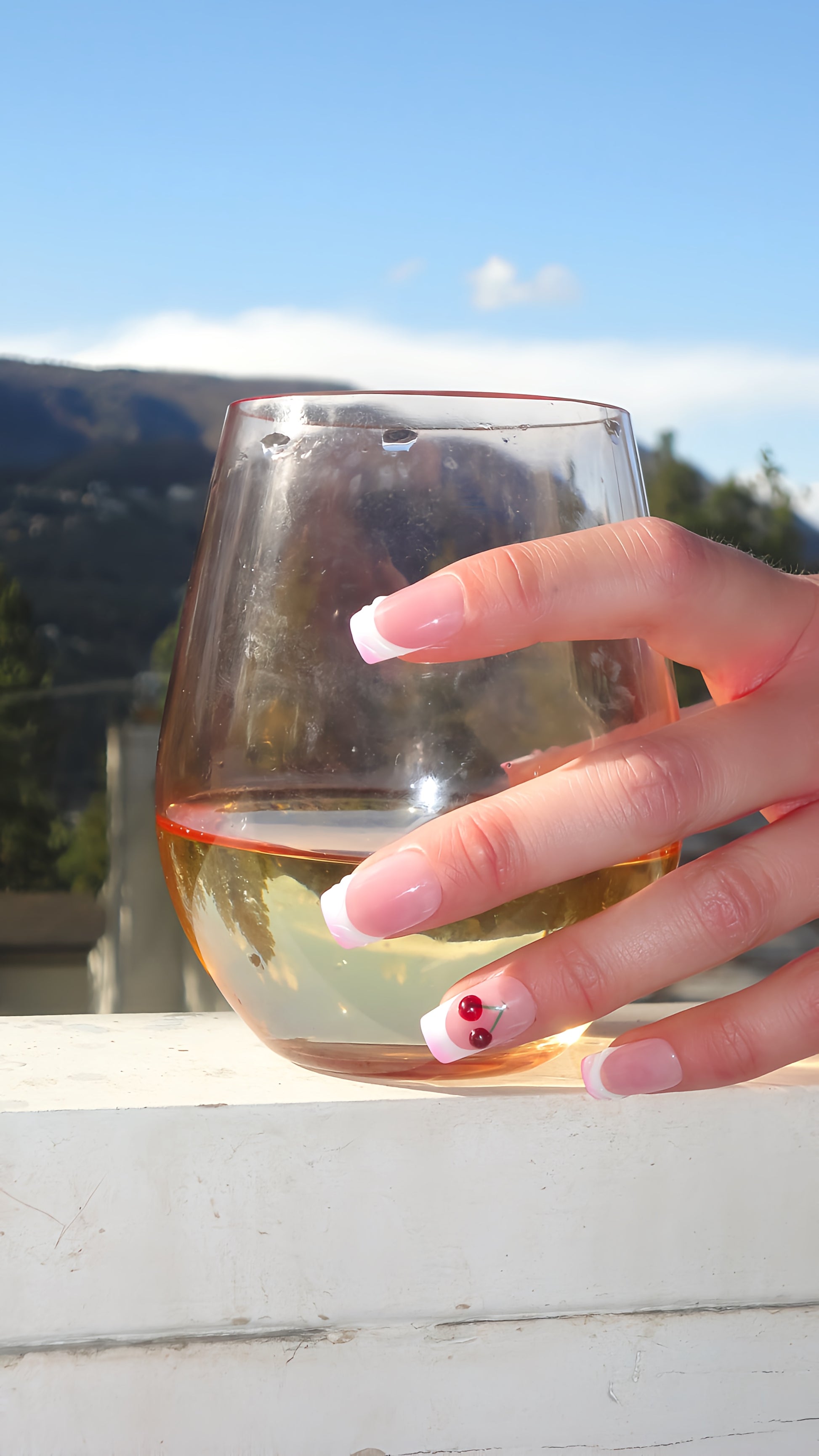 Fresh, flirty, and full of charm, Cherry Twist is your go-to set for the sunny seasons. Featuring soft pink and white ombré French tips, dreamy 3D wavy accents, and hand-painted cherries on each ring finger, this set captures a playful, spring-summer vibe. Perfect for adding a cute and sweet touch to any look.