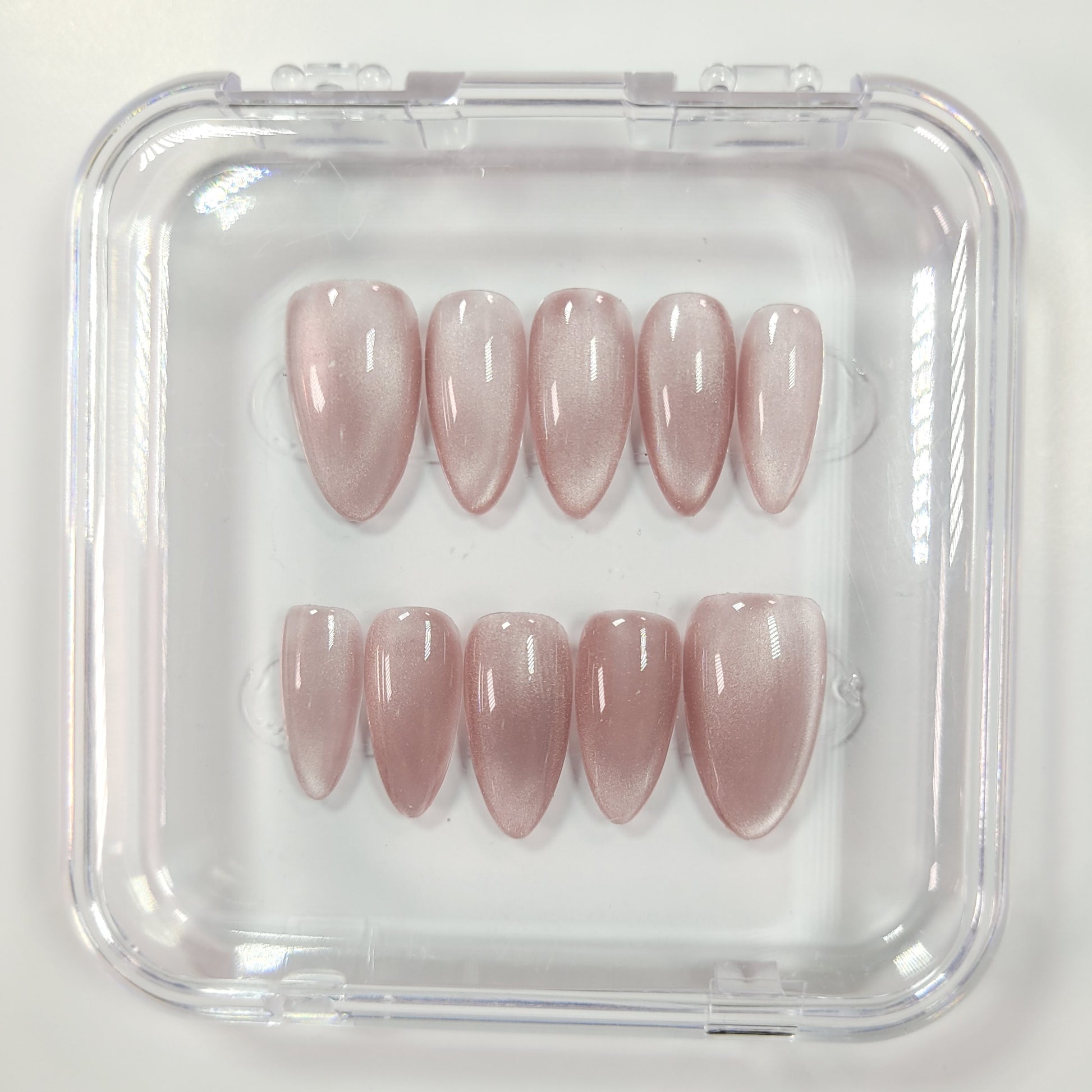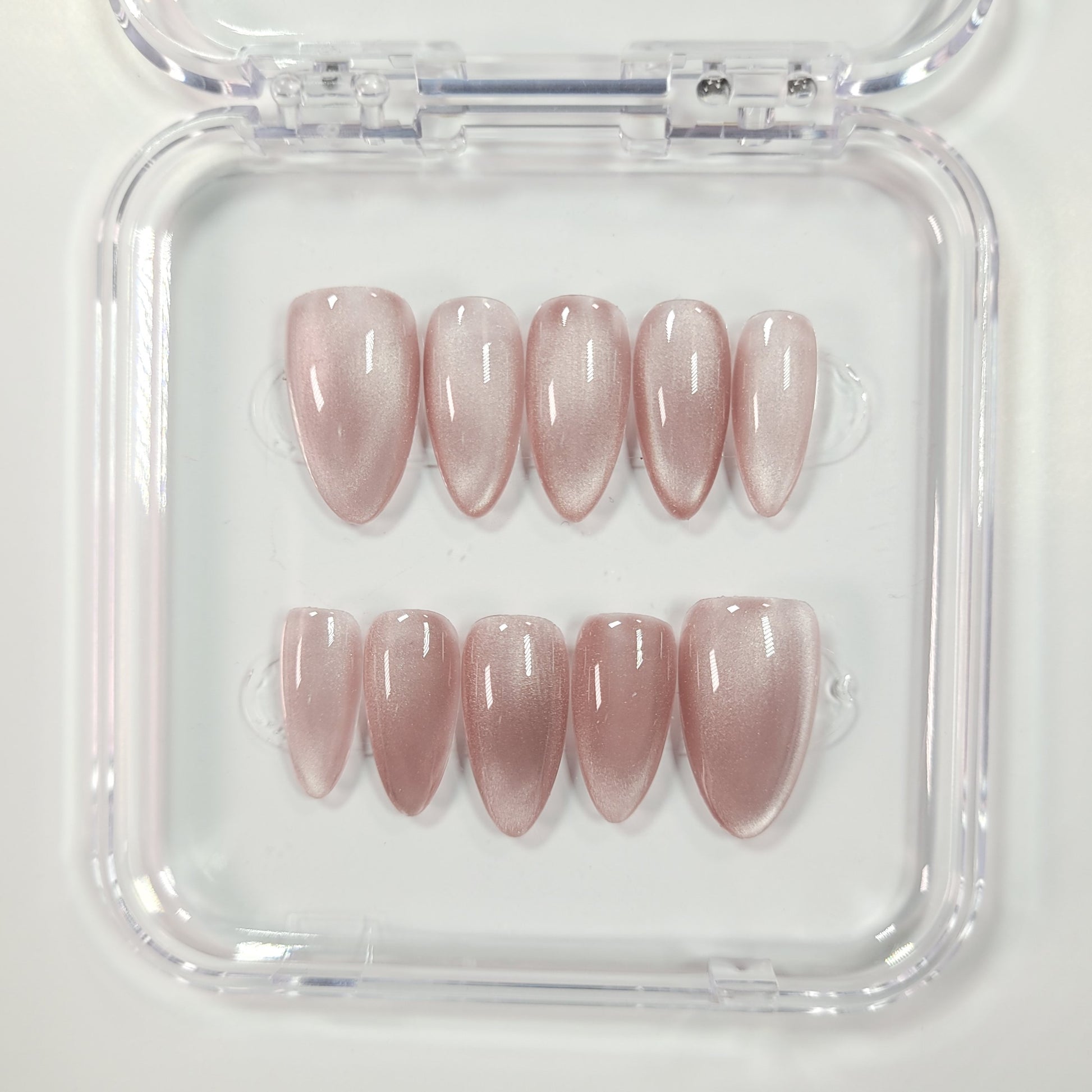 Moonlight Pink – Achieve understated elegance with this classic nail set. Made with moonlight cat eye gel polish, it's perfect for daily wear or the office, offering a simple yet timeless look that complements any professional setting.